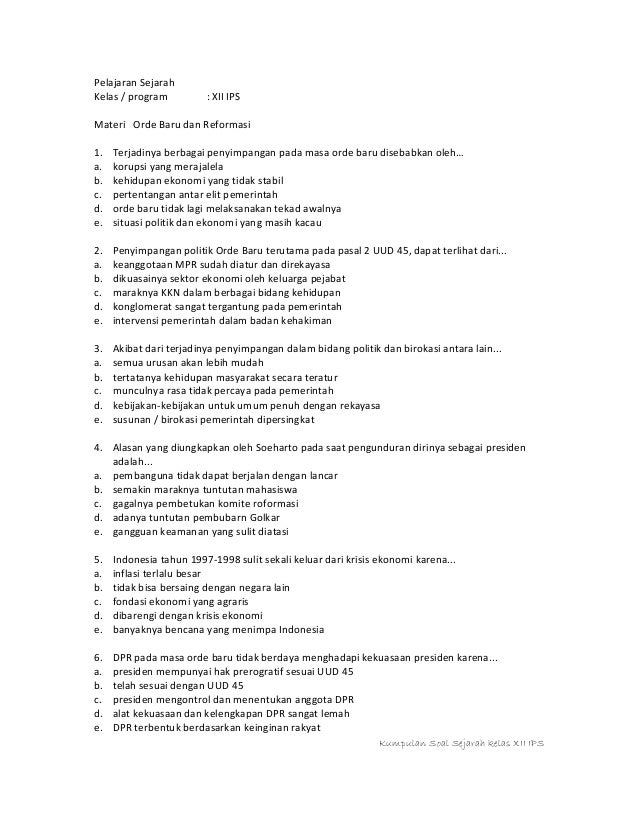 Soal Sejarah Kelas Xii Sma Semester 2 Ips Idn Paperplane