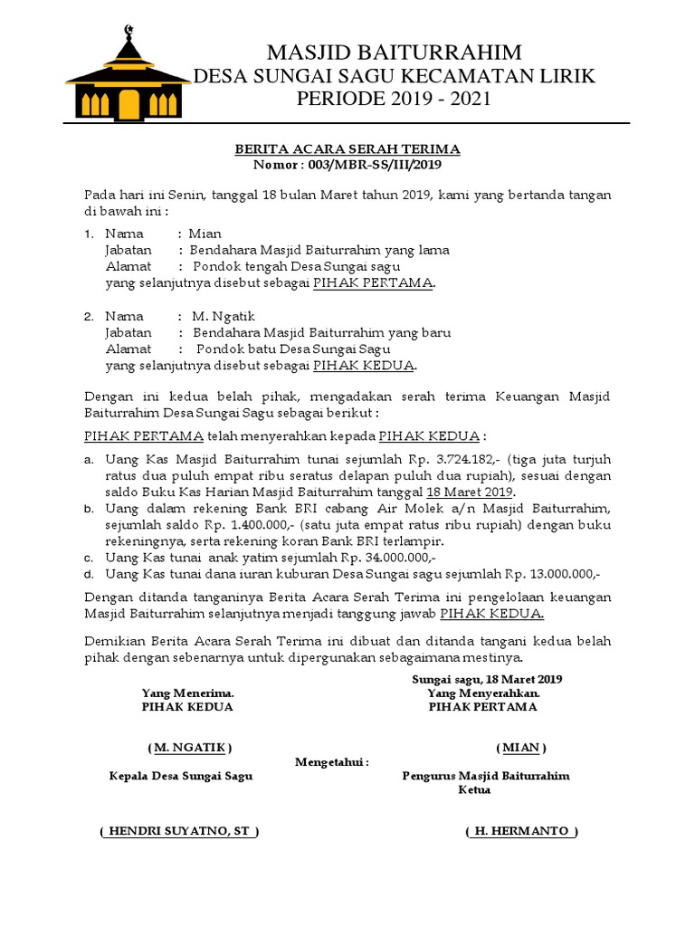 Contoh Berita Acara Serah Terima Jabatan Pengurus Masjid Contoh Surat