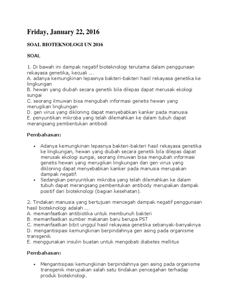 Contoh Soal Beserta Jawaban Dan Pembahasannya Tentang Bioteknologi Ilmusosial Id