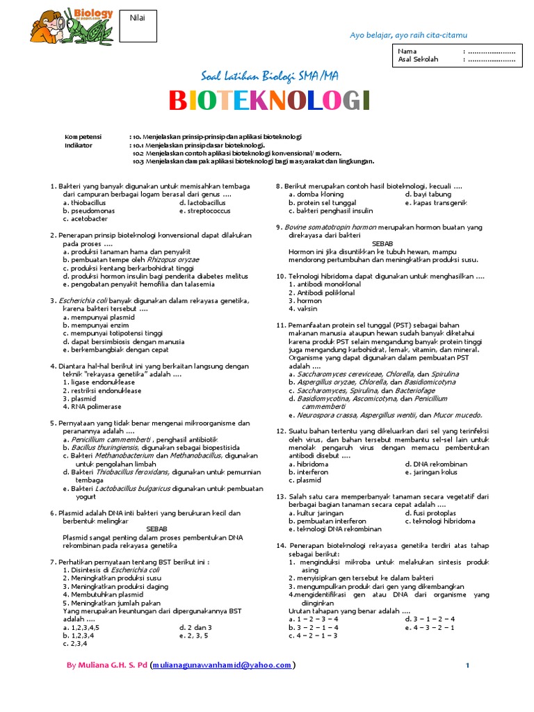Soal Bioteknologi Kelas Ix Smp Info Pendidikan Dan Biologi