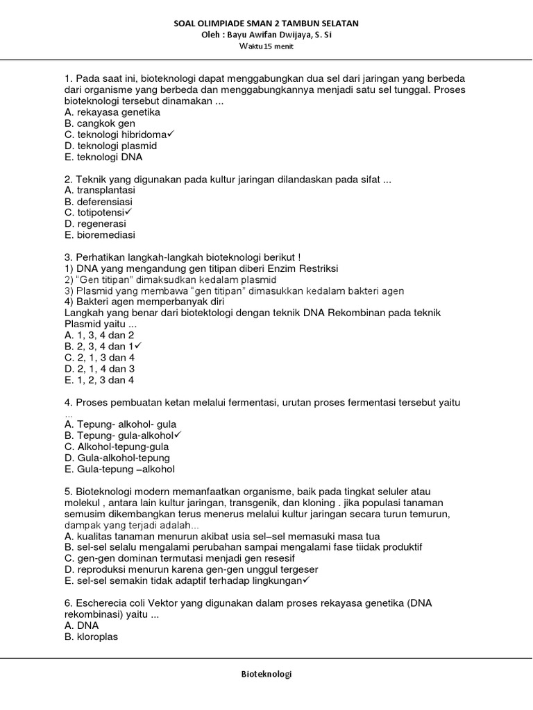 Soal Bioteknologi Olimpiade Kabupaten Sman 2 Tambun