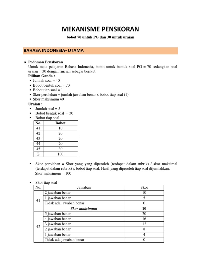 Bobot Pensakoran Pg Dan Uraian Usbn Sd 2018 Pdf