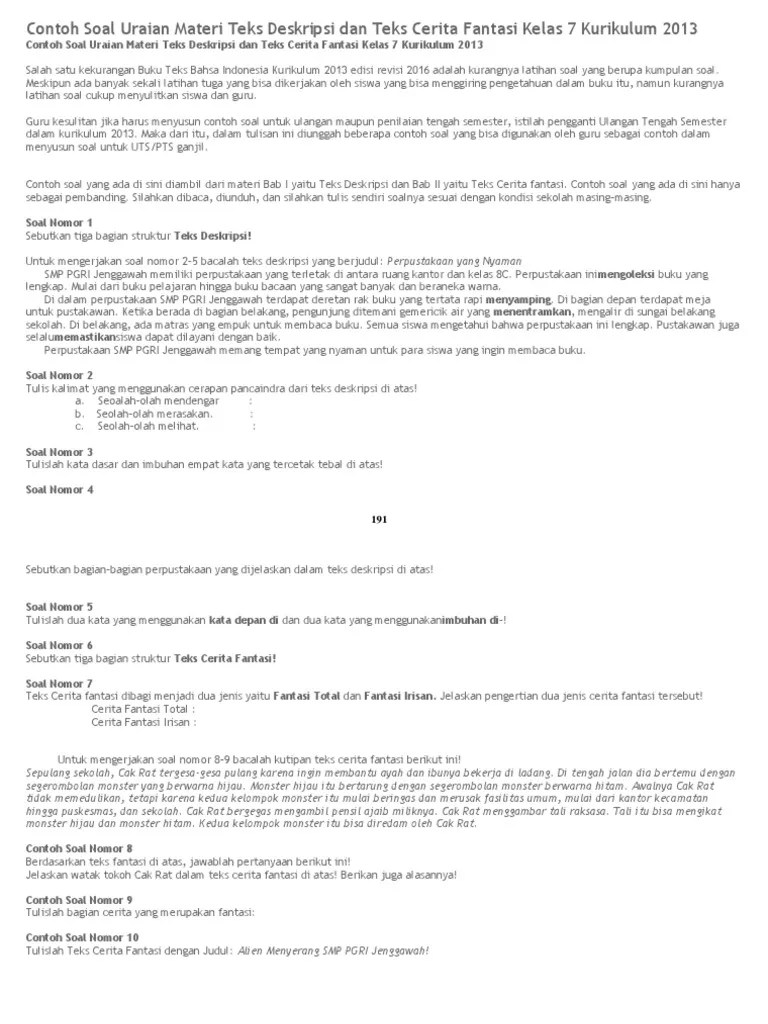 Contoh Soal Teks Deskripsi Kelas 7 Kurikulum 2013 Cute766