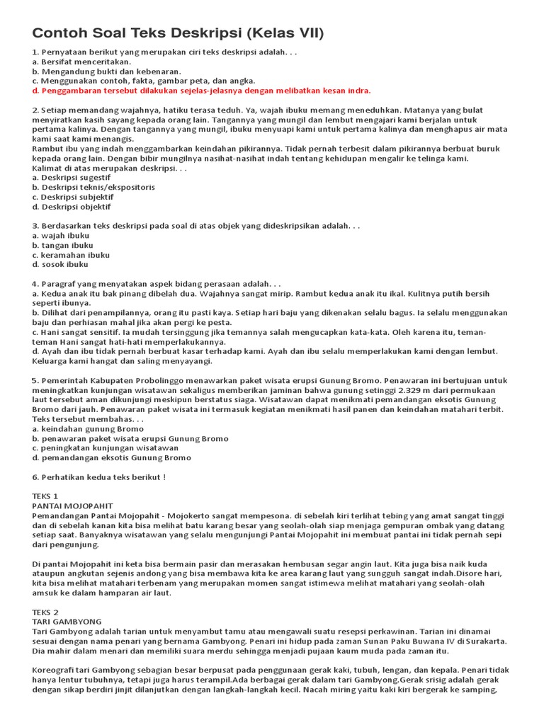 Contoh Soal Teks Deskripsi Bahasa Indonesia Kelas 7 Berbagi Teks Penting Cute766